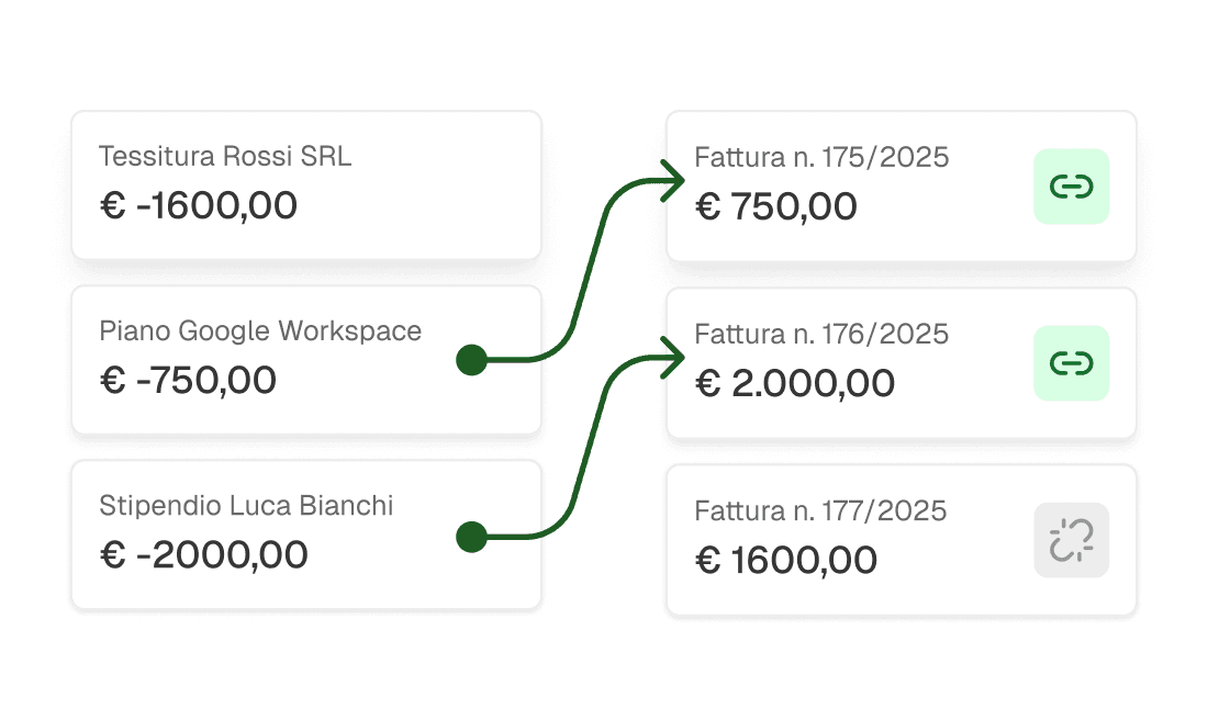 Movimenti e fatture si abbinano da soli - e la prima nota per il tuo commercialista si prepara da sola